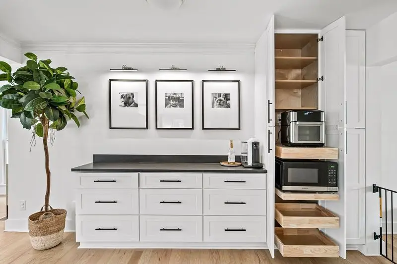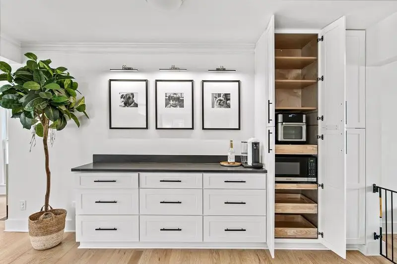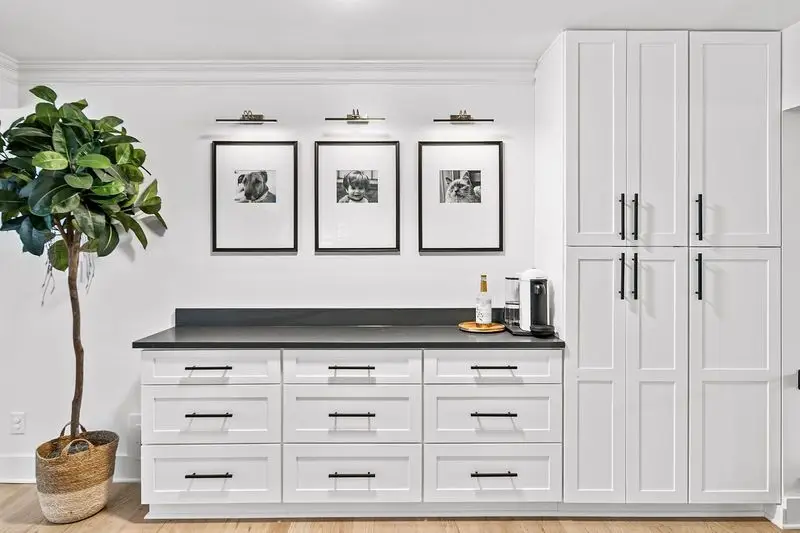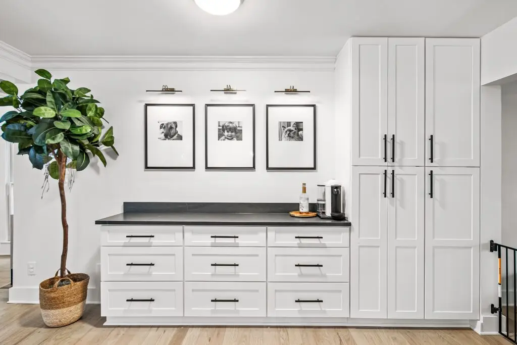 The Perfect Coffee Bar - White Shaker Cabinets and Soapstone Countertop