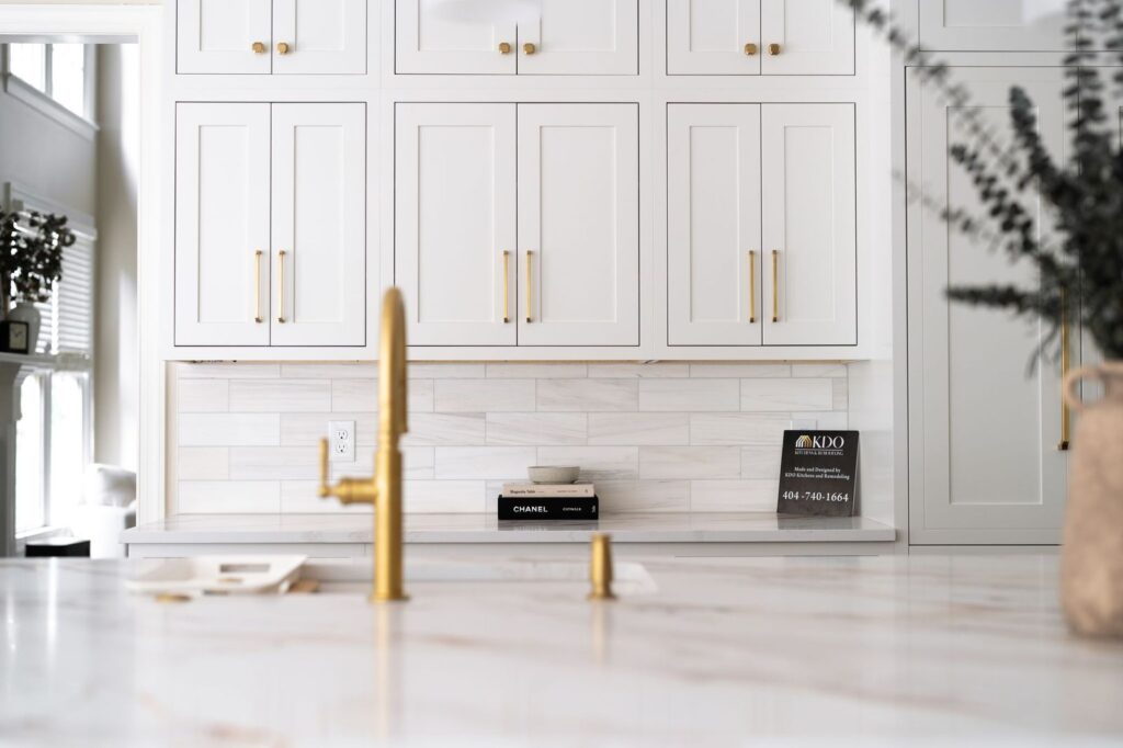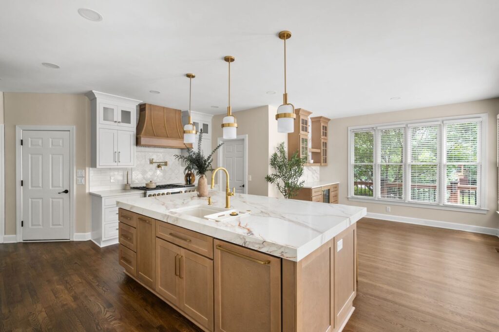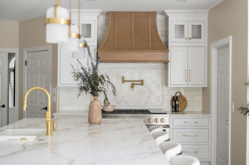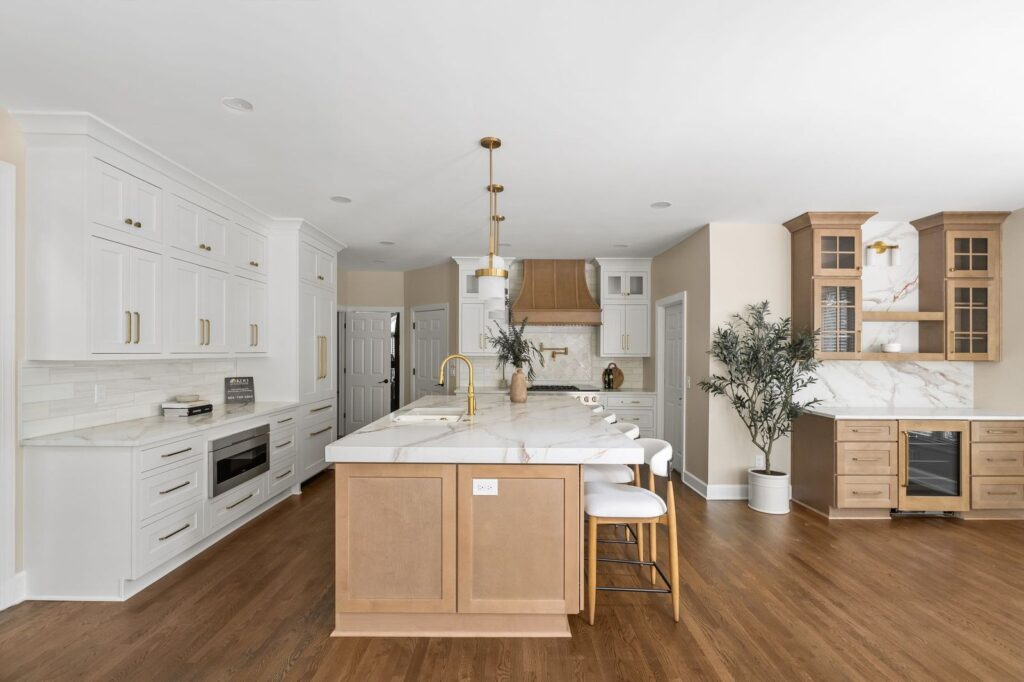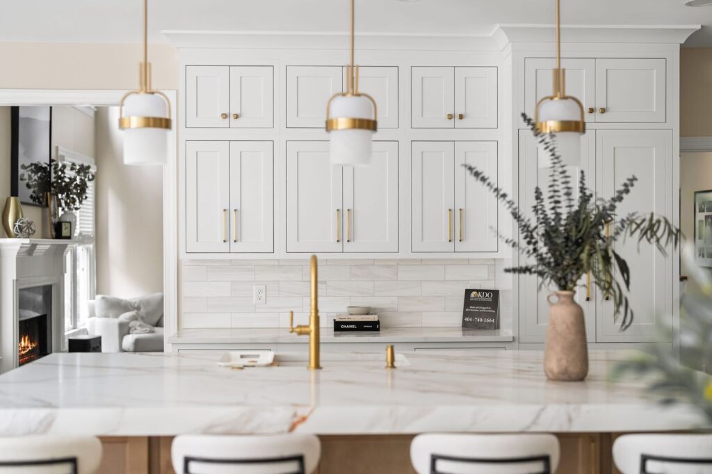 Luxury White Shaker Kitchen with Warm Wood & Brass | Atlanta remodel