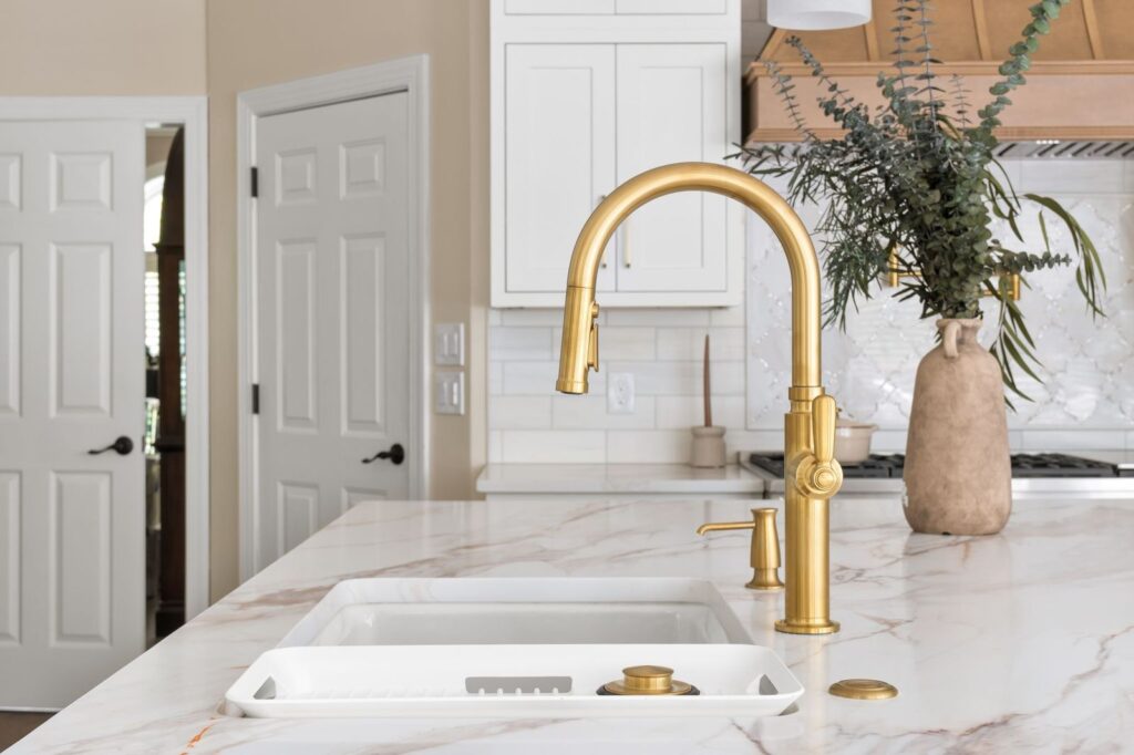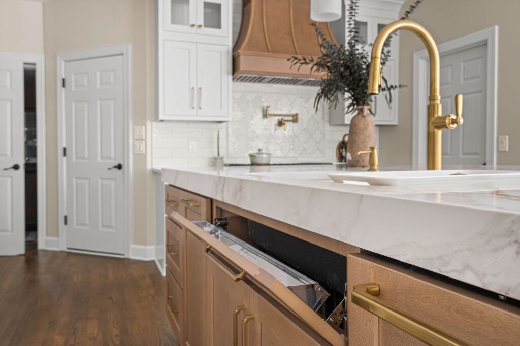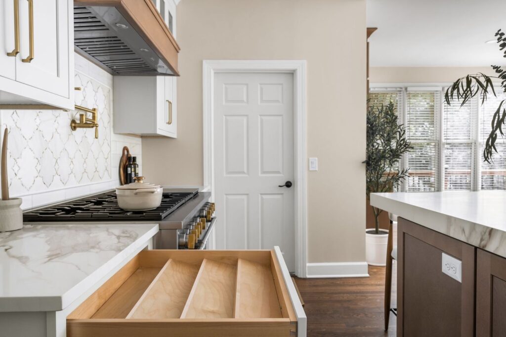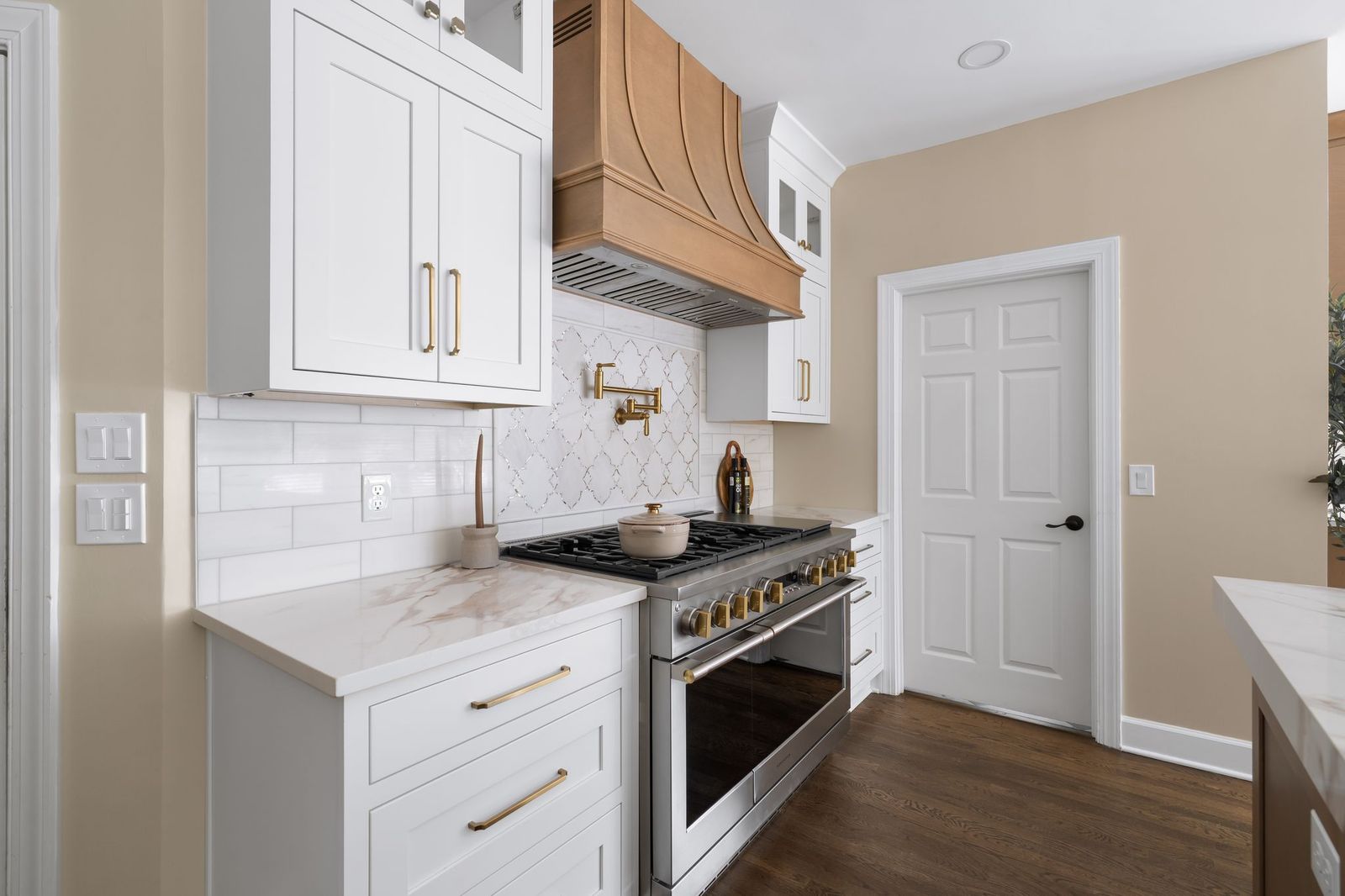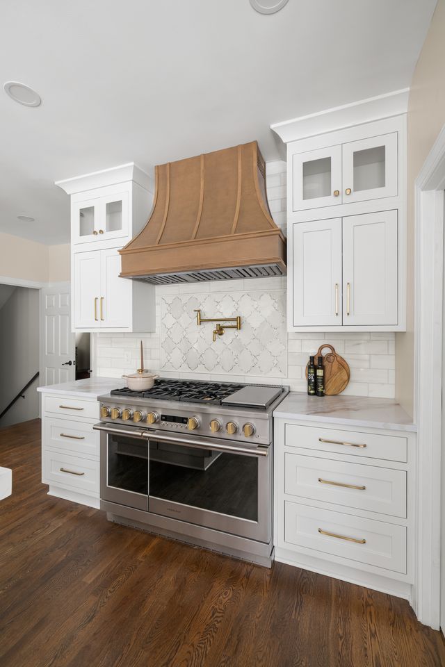 Luxury White Shaker Kitchen with Warm Wood & Brass | Atlanta remodel